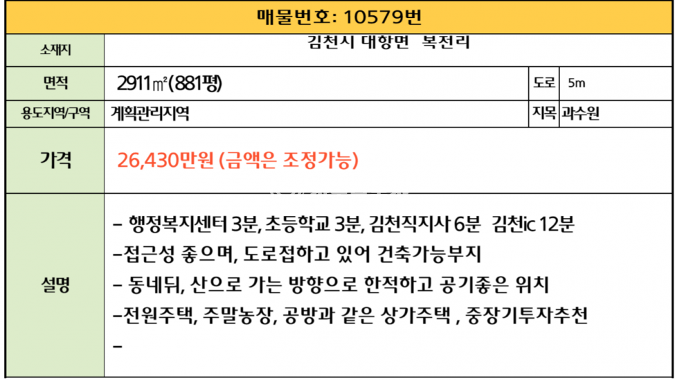 | 주소 | 경북 김천시 대항면 복전리187 | 거래 유형 | 매매 |